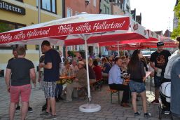 Guten Zulauf hatte die heutige Bierprobe der beiden Brauereien (Müllerbräu und Urbanus) auf dem Hauptplatz vor dem Rathaus – na klar: es gab ja Freibier und Brezn, das schmeckt doch immer. Diese Veranstaltung ist immer der offizielle Vorgeschmack auf das kommende Volksfest in Pfaffenhofen. Neben einigen hunderten Bürgerinnen und Bürgern hatten sich auch einige Stadträte eingefunden.