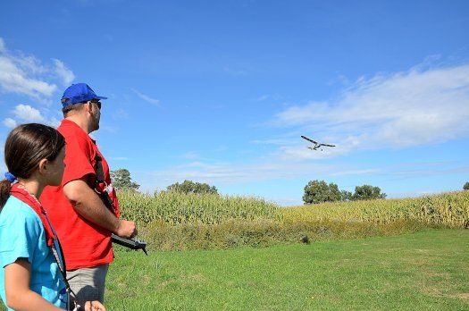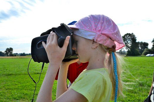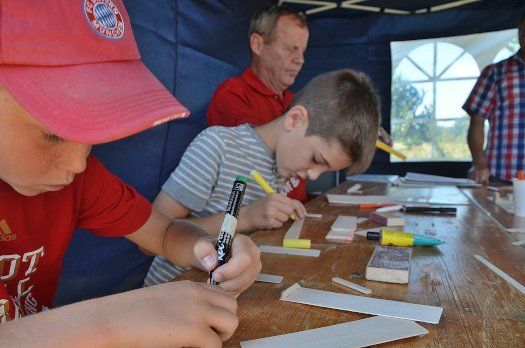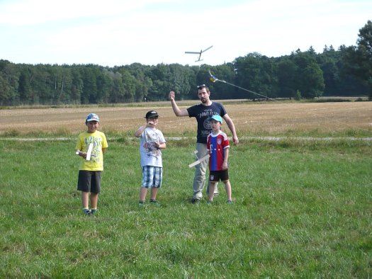 Gleich zwei parallel laufende Programme hatten die Modellflieger in ihrem Angebot. Während die eine Gruppe zum Basteln eines Segelflugzeugs antrat konnte die andere erleben, wie es sich anfühlt, selbst eine motorgetriebene Maschine durch den Luftraum zu jagen oder mit dem Segler eine brauchbare Thermik zu finden. Eine der tollen Kisten war sogar mit einer Kamera ausgestattet und jeweils ein Beobachter am Boden konnte mit einer speziell dafür angefertigten Brille die einzelnen Flugbewegungen live mitverfolgen.