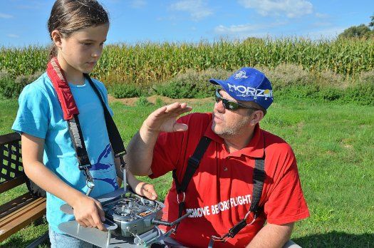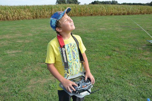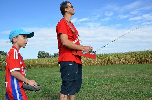 „Es ist heute sehr bockig“, meinte Instruktor Laue wegen des am Flugtag herrschenden Windes. Umso anspruchsvoller waren deshalb die Anforderungen an die Piloten. „Wo ist denn jetzt mein Flieger?“ war vielleicht auch deshalb eine der häufig gestellten Fragen. Die Sonne blendete zusätzlich und machte die Steuerung der knapp ein Kilogramm leichten Flieger nicht einfacher. Tat aber der Freude am Schnupperfliegen mit den Miniaturflugzeugen keinen Abbruch. „Immer den Steuerknüppel festhalten!“, mahnte Laue es Öfteren. Es ist halt keine Playstation und ohne eine entsprechende Schulung folgt die sprichwörtliche Bruchlandung auf dem Fuß, wie die Nachwuchspiloten schnell merkten. Gebannt lauschen sie deshalb den Anweisungen auf dem Flugfeld.