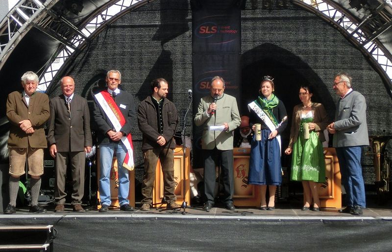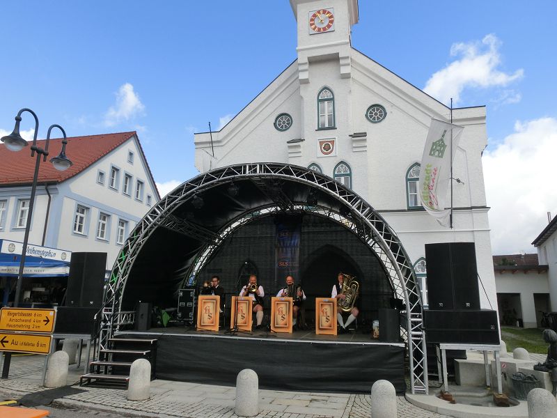 Nach der Messe begann der Sonntag mit den Holledauer Musikanten und zahlreichen Prominenten auf der Bühne vor dem Rathaus. Bürgermeister Jakob Hartl begrüßte nicht nur die Kollegen aus den Nachbargemeinden Au, Hörgertshausen, Wolnzach, Mainburg und Geisenfeld sondern auch den stellvertretenden Landrat von Freising, Robert Scholz. Anna Drossmeier, die neue Hopfenkönigin war ebenso dabei wie Dr. Johann Pichlmeier, Präsident d. Deutschen Hopfenverbandes und Adolf Schapfl, Vorsitzender des Hallertauer Hopfenverbandes.