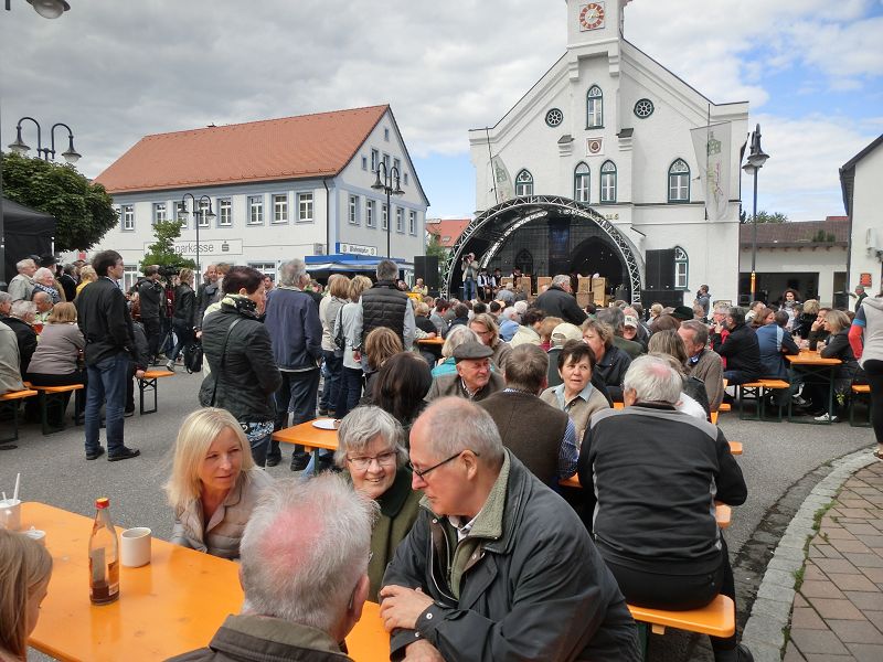 Das 5. Hopfensiegelfest Nandlstadt lief auf Grund des sehr kühlen und bewölkten Wetters zwar etwas zögerlich an, aber ab Nachmittag, wo sich auch öfter die Sonne zeigte, waren die Plätze rund um die Bühne vor dem Rathaus und bis in die Hauptstraße hinein voll belegt, Ex-Vizelandrat und Hallertauer Urgestein Hans Neumeier führte gekonnt und immer wieder mit lustigen Geschichten aus der Hallertau durch das Programm.