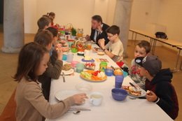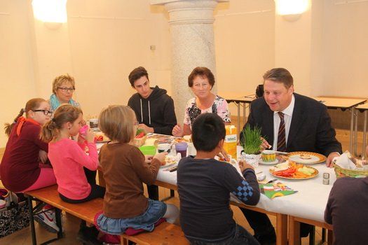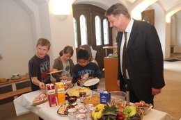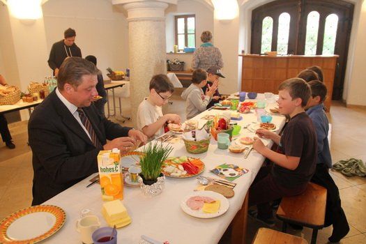 Wurst, Käse, Eier, Gemüse, Obst, Müsli und selbstgemachter Honig – eine Tafel die kaum einen Wunsch offenlässt. „Ich freu mich jetzt richtig auf ein gemütliches Frühstück mit euch“, so der Bürgermeister, der für die kleinen Gäste das Büro Büro sein ließ, um um im Rathauskeller zu frühstücken. „Was gibt es Schöneres?“ Einfache Antwort: nichts! Und so ließen sich die 11 Jungen und Mädchen die Produkte aus dem heimischen Garten schmecken, die Wolnzachs 3. Bürgermeisterin mitgebracht hatte.