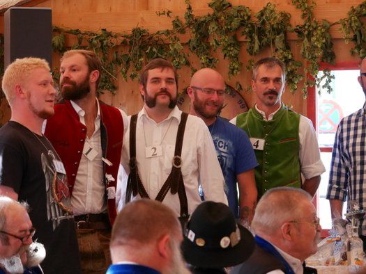 Die verschiedenen Kategorien der Bewertungen, die Stile, Geschichten von Weltmeistern und Olympiasiegern in der internationalen Bartwelt, Wilhelm Preuß hatte viele einführende Worte bis es zum eigentlichen Ereignis der Amateur-Meisterschaft kam. Vierzehn heimische Bartträger der unterschiedlichsten Erscheinungsformen, traten dann auch in der Wertungsform „freestyle“ vor die ehrenwerte Jury, aus vier Fachfrauen und dem dritten Bürgermeister Roland Dörfler. Wie aus anderen Sportarten bekannt, kamen Nummerntafeln zu Einsatz, wobei oberste und unterste Wertungen gestrichen wurden. Nach einem Stechen bei Gleichstand, konnte Volksfestreferent Richard Fischer den dritten Platz für sich beanspruchen. Steven Schön erreichte mit seinem eigenwilligen Haargesamtkunstwerk aus der Phantasieabteilung den zweiten Platz belegen. Den Gesamtsieg, mit einem sehr konservativem Vollbart mit gezwirbeltem Schnauzer in Blond, erzielte Christoph Lehmeier aus Pfaffenhofen.