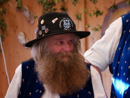 Der Laie staunt und der Fachmann wundert sich, wir haben es immer gewusst, Männer mit Bärten haben etwas zu verbergen, im Falle des Bart- und Schnauzerclub Präsidenten Wilhelm Preuß ist es eine beträchtliche Menge Humor und Selbstbewusstsein. Eine gut 30 köpfige Delegation des haarigen Vereines, hatte sich im Schön Zelt eingefunden, um sich und ihre Leidenschaft zu präsentieren. Gut die Hälfte der Mitglieder hatte ihre Manneszierde aufs prächtigste getrimmt und genossen das Blitzlichtgewitter der Fotografen, mit selbstbewusstem Lächeln.