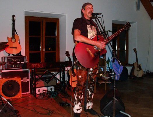 Heuer waren die Sponsoren zwar weniger als in den Jahren zuvor, „aber wir machens trotzdem“. Wenn sich Zapa etwas in den Kopf setzt, lässt er sich auch von fehlender Unterstützung nicht ausbremsen. Tolle Künstler hatte er für diesen Abend wieder gewinnen können, nur das Publikum hätte etwas zahlreicher sein dürfen. Als Initiator des Mundartfestivals eröffnete selbstverständlich Zapa mit Auszügen aus seinem Programm. Er selbst bezeichnet sich als Blueszigeuner und Solobiker und verpackt seine frechen Texte mit seiner Gitarre. Mit Liedern wie „I bin so furchtbar“, „Der Schweinehund in dir“, oder „Der Schwammerlkönig“ stimmte er die Zuhörer auf einen abwechslungsreichen Musikabend ein. Und nicht zu vergessen steht ZAPA für Z - ünftig, A- bgefahren, P - fenning guad und A - nimalisch.