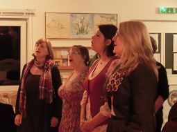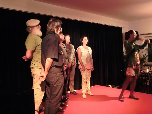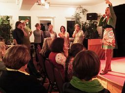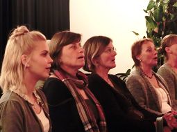 16 Frauen und 2 Männer machten sich unter ihrer fachmännischer Anleitung an die Grundbegriffe des Jodelns: Von der Singstimme in die Kopfstimme, ein- zwei- aber sogar dreistimmig die Melodie halten, das war gar nicht so einfach, wurde aber von den Anwesenden nach kurzer Zeit hervorragend umgesetzt, so dass die Jodler reich und voll im Klang den Raum erfüllten. Und diejenigen, die etwas mehr Probleme hatten, die richtigen Töne zu treffen, wurden liebevoll "rangenommen", bis alles saß.