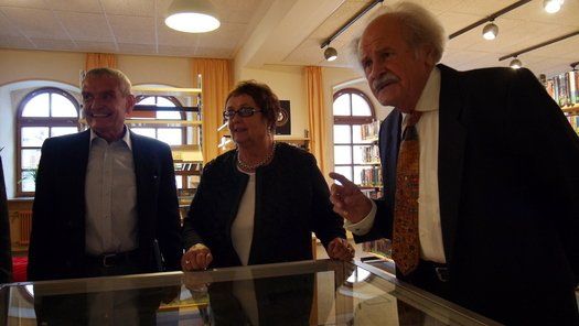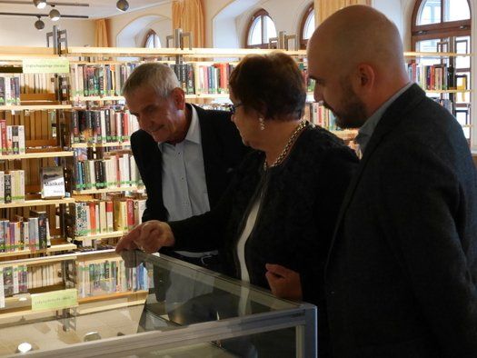 Das gegenseitige Schenken von signierten Büchern ihrer Lieblingsschriftsteller, war ursächlich für die Sammlung, erzählt Franziska Krammer-Keck, bei der Ausstellungseröffnung, die gewidmete Bücher aus 50 Jahren Sammlertätigkeit präsentiert. Kulturreferent Peter Fessl referierte bei seiner Laudatio über seine ganz persönlichen Erinnerungen mit dem Ehepaar Krammer-Keck. Die morgendliche Begrüßung der Rundfunksprecherin aus dem Radiowecker, oder die unverkennbare Stimme des Erzählers bei Schulveranstaltungen, es waren immer die akustischen Merker, die im Gedächtnis blieben.