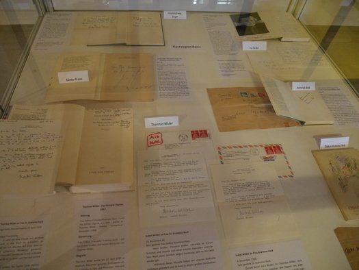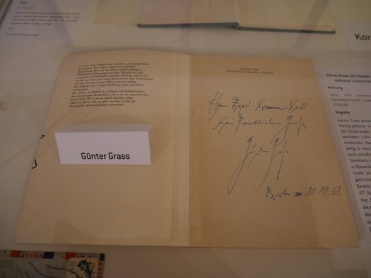 Nicht nur handsigniert sind die Bücher, es gibt sogar einen sehr persönlichen Schriftverkehr mit den einzelnen Literaten. So kann der geneigte Besucher der feinen, kleinen Ausstellung, in aller Ruhe, in der umtriebigen Vergangenheit des rührigen Ehepaares schmökern.