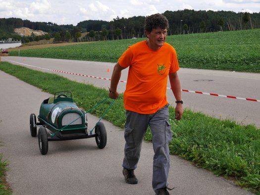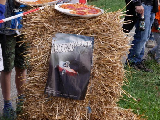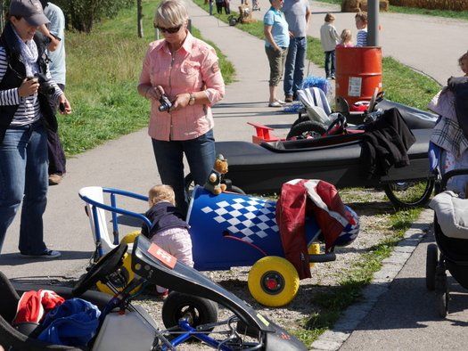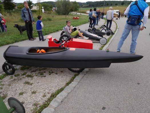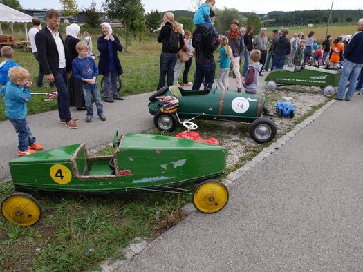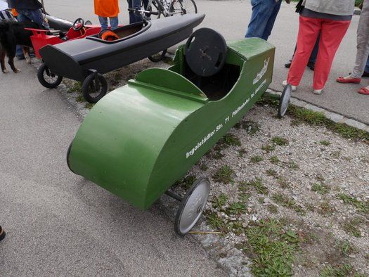 Nach 65 Jahren Pause, fand heute in Pfaffenhofen wieder ein offizielles Seifenkisten-Rennen statt. Zu gewinnen gab es, wie damals, kurz nach dem Krieg, eine Armbanduhr, Bücher und Schokolade. Das schönste Fahrzeug wurde außerdem noch durch die Summe der geklebten roten Sympathiepunkte ermittelt.