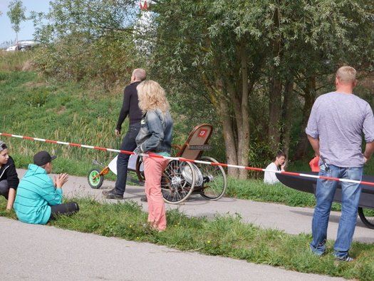 Bei den Endausscheidungen auf dem langen Stück, fand eine regelrechte Materialschlacht unter den schnellsten Teams statt. Geschwindigkeit war aber nicht alles, das Fahrzeug sollte auch bis zum letzten Rennen durchhalten. Altersklassenwertungen und Gewichtsklassen gab es nicht, letztendlich entschied der Spaß Faktor und die Phantasie.