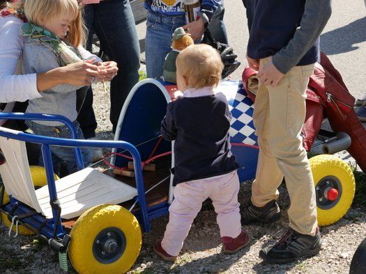 Nach bestandener technischer Inspektion und Bremsprüfung, durften die abenteuerlichen Gefährte im Fahrerlager an der Rennstrecke bewundert werden. Als Auftakt und Zwischenrennen machten Bobbycar Piloten das zahlreiche Publikum schon mal für die Hauptrennen warm. Der rührige Verein mobile e.V., bekannt durch die legendären Humulus Lupus Doldensound Konzerte, hat mit der Seifenkistenrennidee, wieder einen absoluten Volltreffer gelandet. Der Publikumsandrang bei dem ersten Renn „event“ war gewaltig und die Fahrzeuge, in der nur offenen Klasse, durchaus renntauglich.
