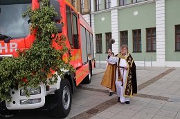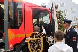 „Wir stellen heute das neue Feuerwehrfahrzeug feierlich in Dienst“, so Braun. In diesem Zuge widmete der Priester ganz besondere Gedanken an all jene, die ihr Leben in den Dienst der Gemeinde stellen, die ohne zu zögern ausrücken, um Menschen in höchster Not beizustehen. „Es ist ein stolzer Tag eben nicht nur für die Feuerwehr, sondern auch für die gesamte Gemeinde“, so Bürgermeister Jens Machold. Dabei richtete der Rathauschef den Blick auf die modernste Ausstattung und die Möglichkeiten im Einsatz. „Es ist ein wesentlicher Beitrag zur Sicherheit der Gemeinde.