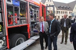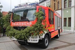 Mit der Weihe wurde es nun feierlich in den Dienst genommen. „Wir segnen heute aber nicht nur das Fahrzeug, sondern vor allem auch die Menschen, die mit ihm zu den Einsätzen fahren“, so Pfarrer Johann Braun. In diesem Sinne überreichte er Kommandant Werner Fuchs einen heiligen Christopherus. „Möget ihr nicht nur anderen Menschen helfen, sonder auch immer wohl behalten von Einsätzen zurückkehren. Wie wichtig die Technik auf der einen, aber auch die Menschen auf der anderen Seite sind, das betonte am Ende auch noch Bürgermeister Jens Machold. „Mit viel Einfühlungsvermögen steht ihr Mitmenschen in schweren Stunden bei.“ Dafür gab es am Ende auch dem ganz besonderen Dank des Rathauschefs.