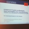 Petersen kam am Mittwochmorgen nach Wolnzach mit vielen, leicht verständlichen Charts, die der Veranstalter KUS = Kommunalunternehmen Strukturentwicklung Landkreis Pfaffenhofen a.d. Ilm, allen Teilnehmern und Interessierten im Handout zumailt. Im Mittelpunkt der Ratschläge ständen Projekte in gewinnorientierten Unternehmen. So seien Projekte mit geringer Attraktivität (= Marktnachfrage) und hohem Risiko, sog. „dead ducks“, sofort einzustellen. Der Focus müsse auf niedrigem Risiko mit hoher Attraktivität liegen, sog. „heiße Projekte“.