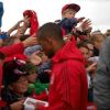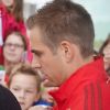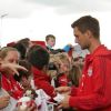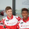 Nach Gruppenfoto und zahlreichen Autogrammen für Fans und Audi-Mitarbeiter absolvierten die Bayern eine kurze Audi driving experience. Auf dem Programm: Übungen mit dem Audi R8 auf einem Handling-Parcours und mit dem Audi Q7 auf einem Offroadkurs. Danach ging es mit Tom Kristensen und seinem Audi-Rennfahrerkollegen Markus Winkelhock auf die schnellen Runden.
