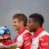 Rekordmeister im Fußball trifft Rekordsieger im Motorsport: Tom Kristensen, der in seiner Karriere neunmal die berühmten 24 Stunden von Le Mans gewonnen hat, chauffierte heute Thomas Müller und Robert Lewandowski, den Schützen des historischen „Fünferpacks“ am Dienstagabend, um den Kurs in Neuburg. Mario Götze und David Alaba fuhren mit Markus Winkelhock. Die schnellen Runden im Rennauto des Audi Sport TT Cup waren der Höhepunkt der symbolischen Autoübergabe an den Verein am heutigen Mittwoch.