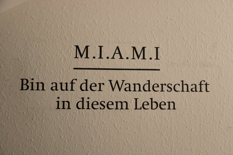 "In manchen Situationen ist es schwierig, sich den Nächsten mitzuteilen" lautet eine Textpassage aus dem kleinen Büchlein "Bin auf der Wanderschaft in diesem Leben", aus dem Michael Lederhofer zur Ausstellungseröffnung einige Passagen vorlas und dessen Titel auch das Ausstellungsmotto ist. So richtig vorstellen jedoch kann man es sich nicht bei diesem offenen, auf die Menschen zugehenden Menschen, dass er Schwierigkeiten haben solle, sich mitzuteilen. Das mag aber auch Indiz dafür sein, dass es hinter dem äußeren Ausdruck ein anderes Ich gibt, das sich viel mehr Gedanken macht über sein Umfeld als es den Anschein haben mag. Die veröffentlichten Texte seien mehrheitlich biografisch geprägt und "beschäftigen sich mit fast schon alltagsphilosophischen Fragen", heißt es im Vorwort des Buches. Gut beobachtet, M.I.A.M.I., möchte man ihm bei der einen oder anderen Textstelle unverzüglich zustimmen.