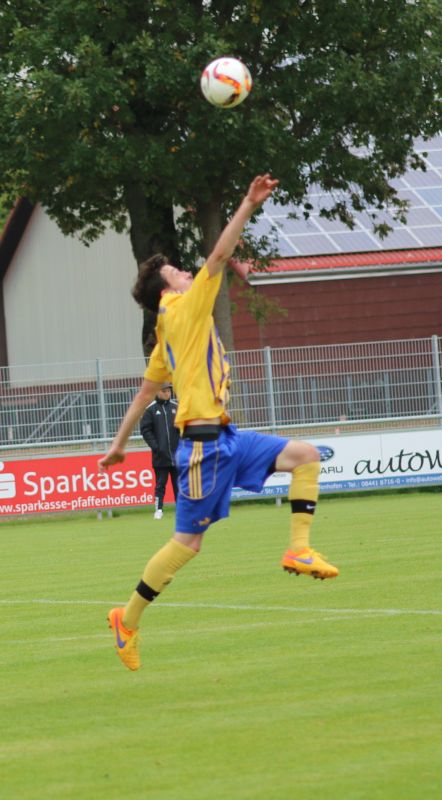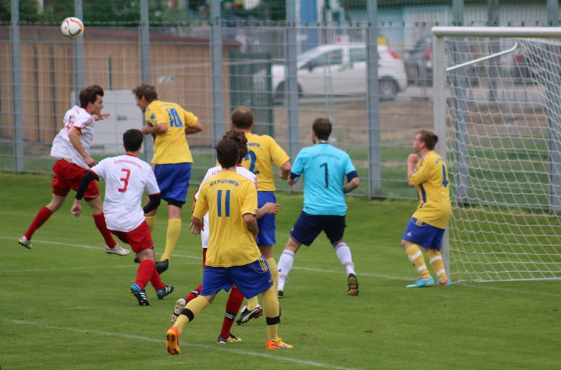 Nach 27 Minuten führte die erste Unsicherheit in der Pfaffenhofener Abwehrreihe dann direkt zum 1:0 der Gäste: einen langen Ball konnten die Blau-Gelben nicht klären, Dominik Singer bedankte sich und lupfte den Ball vom Sechzehnereck traumhaft über Christian Kasper hinweg zur 1:0-Führung. In der Folge verflachte das Spiel etwas, lediglich zehn Minuten vor dem Halbzeitpfiff wurde es noch einmal gefährlich, als sich Hettenshausen über rechts schön in den Strafraum kombinierte, Christoph Riedlbergers Schuss aus elf Metern aber zu harmlos war.