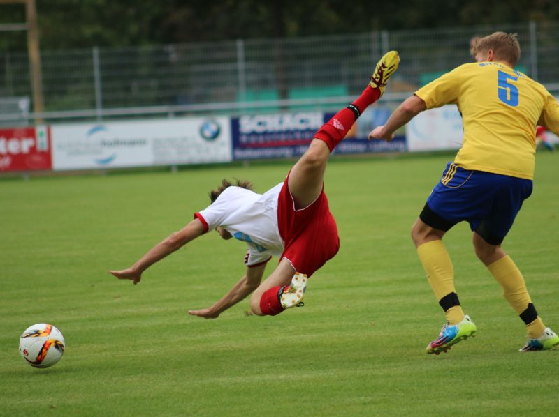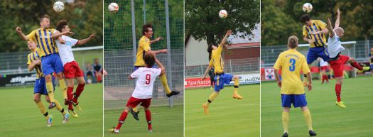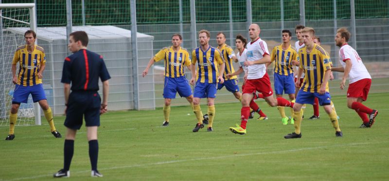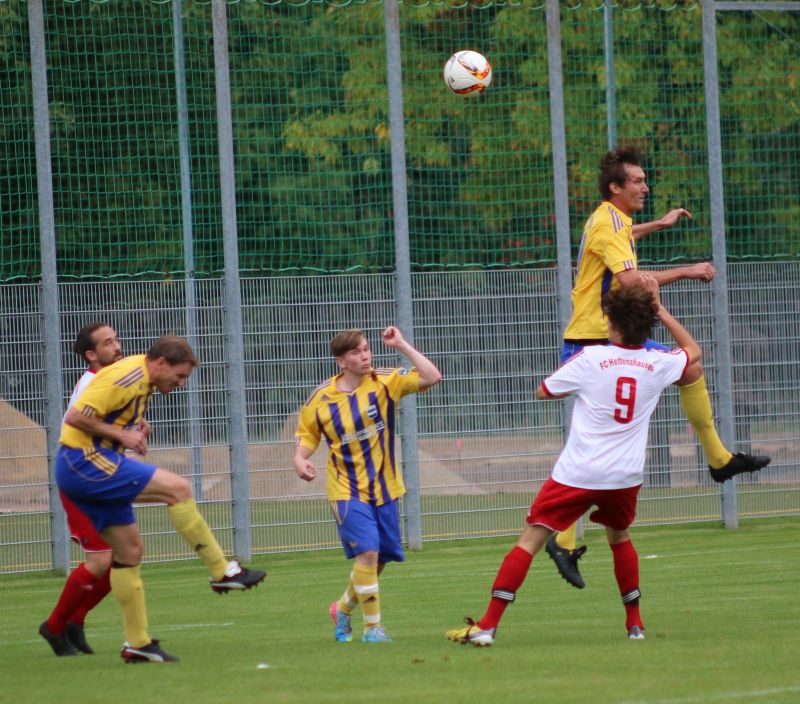 Beide Mannschaften brauchten eine Anlaufphase, um in das Spiel zu finden, viele Unkonzentriertheiten in der Offensive standen in der ersten Viertelstunde des Stadtderbys größeren Chancen im Wege. Ab der 15. Minute jedoch liefen die Kombinationen bei beiden Teams besser, vor allem über die Außen wurde es zunehmend gefährlicher. Erst scheiterte der FC Hettenshausen zweimal freistehend vor dem MTV-Tor, auf der Gegenseite konnte Matthias Zörntlein einen Schuss gerade so um den Pfosten lenken Die darauf folgende Ecke konnte die FCH-Verteidigung gerade noch auf der Linie klären.