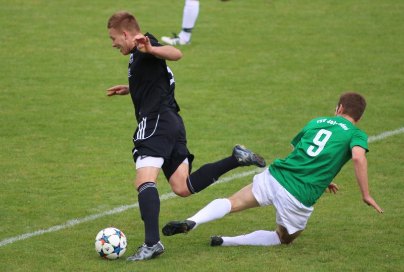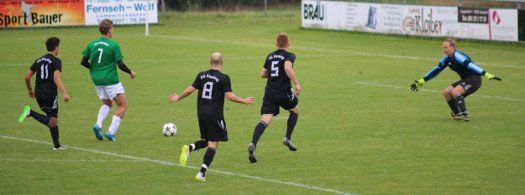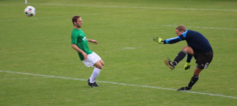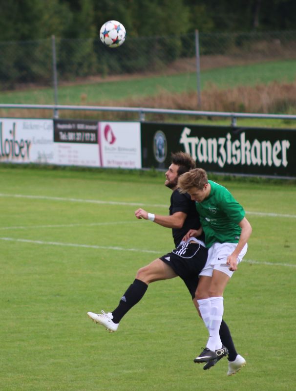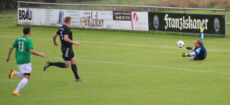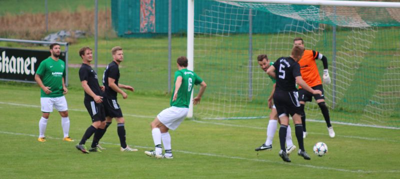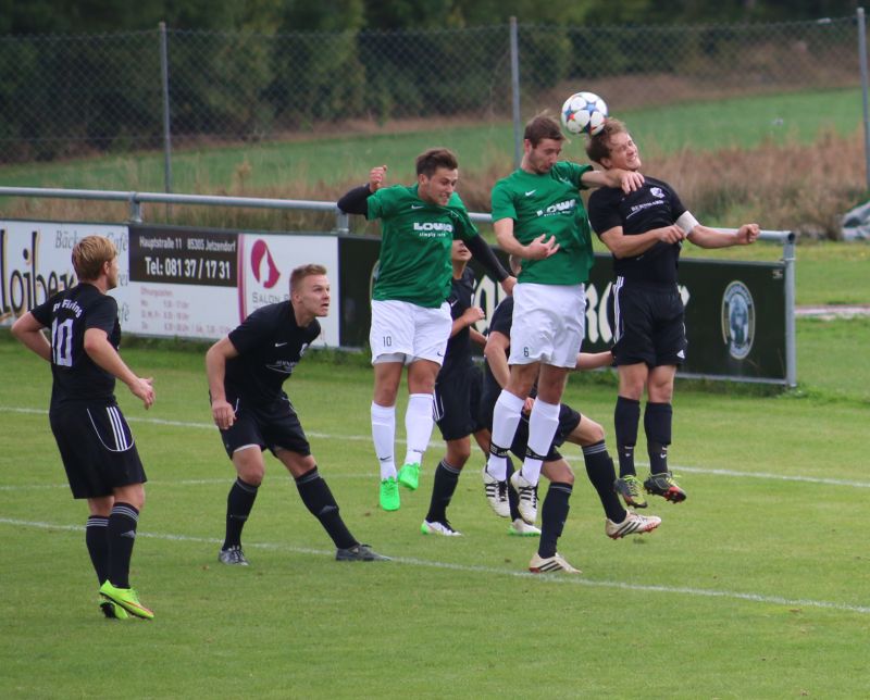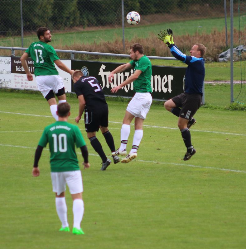 Von Beginn an machte die Maier-Elf klar, dass sie hier als Sieger vom Platz gehen wollte. Es entwickelte sich ein kampfbetontes Spiel, in dem die Jetzendorfer vor allem durch ihr gutes und aggressives Pressing den Gästen immer wieder Probleme bereiteten und darüber zu einigen guten Chancen kamen. Nach 12 Minuten sprang das erste Mal etwas Zählbares heraus: eine Ecke von Maximilian Kreitmair köpfte Martin Schröder zum 1:0 ins Tor; Gäste-Torwart Alfons Deutinger kam zwar noch an den Ball, jedoch hatte dieser die Linie bereits passiert. Auch wenn die Finsinger heftig protestierten, so haben wir hier den Fotobeweis für die Gültigkeit dieses Treffers.