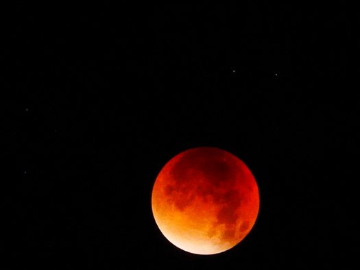 Die Atmosphäre streut rotes Licht in den Kernschatten-Bereich und lässt den Erdtrabanten rot aufleuchten. Daher der Begriff Blutmond. Es ranken sich viele Geschichten um den roten Mond,auch die Bibel nimmt Bezug auf das Ereignis. Im Buch Joel steht: „Die Sonne soll verwandelt werden in Finsternis und der Mond in Blut, ehe der große und schreckliche Tag des Herrn kommt.“