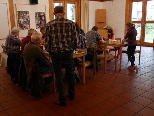 Die Königsdisziplin Schach wir schon länger im evangelischen Gemeindezentrum gepflegt, hier ist die Zahl der Spieler begrenzt, der Spezialist ist am Werk. Warum also nicht den Rest der Familie auch neugierig machen, das Angebot an Brett- und sonstigen Spielen ist riesig. Von 6-99, altersgemischt oder kindgerecht, Kategorien und Schwierigkeitsgrade stehen meist auf der Schachtel.