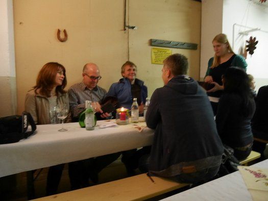 Der Bimes Karl, besser ob seiner theaterspielenden Eigenschaft bewundert, hatte spontan vor 9 Jahren seinen umgebauten urigen Kuhstall für das heimatlos gewordenen Weinfest zur Verfügung gestellt. Den Burgberg 1, Ort des feucht-fröhlichen Geschehens, findet man als Nichthiesiger sicher nicht auf Anhieb. „ Ma muas scho frogn a kenna, d´Leid redn fast mit an jeden!“, wir merken gleich, der „nativ“ Uttenhofener, ist kein „Schodara“, er ist noch Teil der Dorfgemeinschaft und damit oberbayrisch indirekt.