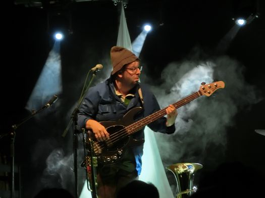 Matthias Meier, der Komiker unter den Dreien, spielt mehrere Instrumente abwechselnd, in einer Hand das Tenorhorn, in der anderen die Trompete, kann hervorragend parodieren oder auch Beatboxen und bringt die Leute damit zum Brüllen.