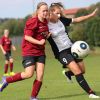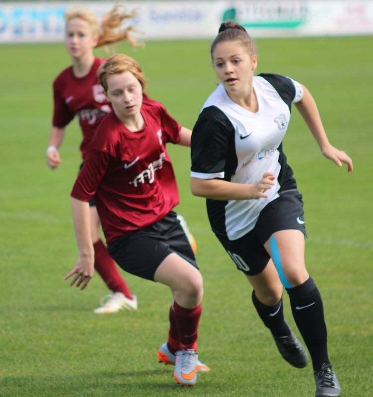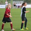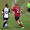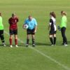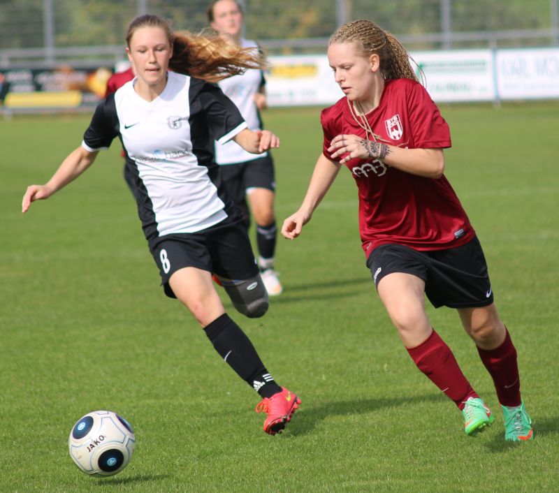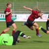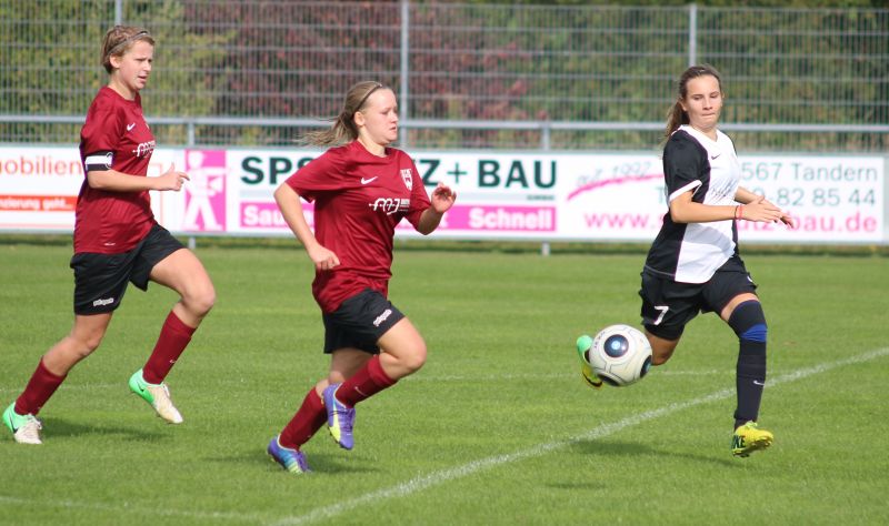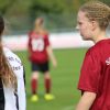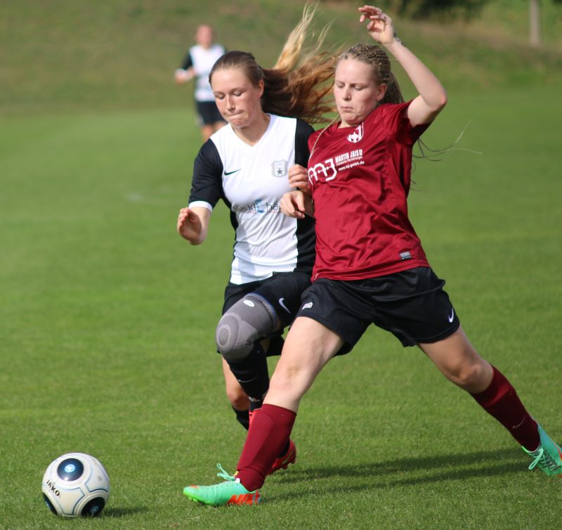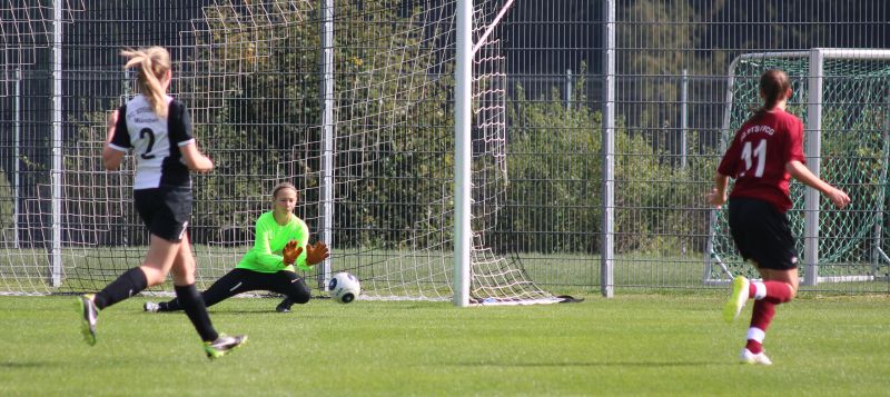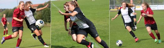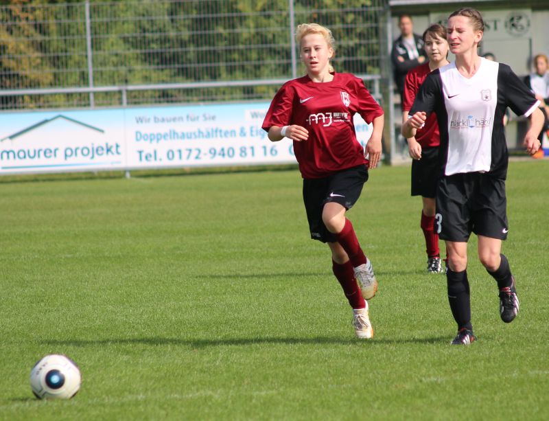 Die erste Viertelstunde des Spiels passierte in den Strafräumen nicht allzuviel. Man tastete sich im Mittelfeld ab, schien die Stärken und Schwächen des jeweiligen Gegeners zu sondieren. Nach 15 Minuten jedoch setzte Lea Lugscheider sich mit ihrer Schnelligkeit gegen die Gästeabwehr durch, scheiterte mit ihrem Schuss an der Münchener Torhüterin. Diese Aktion brachte anscheinend das Signal zu mehr Offensive bei den Gastgeberinnen mit sich, zumindest übernahmen sie jetzt mehr das Zepter in Richtung Tor der Münchenerinnen. Ein Freistoß aus gut 18 Metern von Johanna Roscher konnte in dieser Phase wieder zur Ecke geklärt werden. Als sich eigentlich alle auf ein torloses Unentschieden zur Halbzeit einstellten, überraschte Lara Schiffner die Gästeabwehr inklusive Torhüterin Desiree Krauß und netzte zur zu diesem Zeitpunkt glüclichen Führung ein (38.).