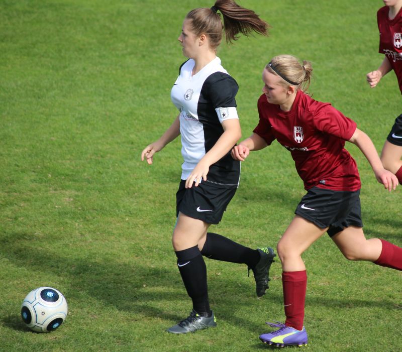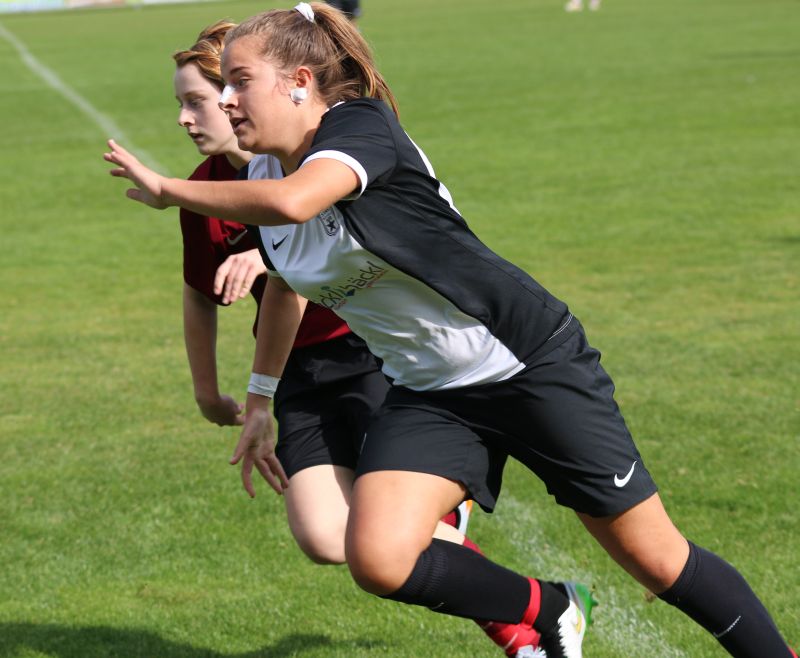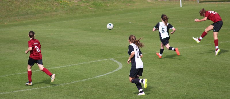 Einsatz und Kampf um jeden Ball waren angesagt - die Mädchen gingen dabei bis an die Leistungsgrenze, konnten sich aber mit einem Punkt selber belohnen (siehe Bild unten: Chrissie Birk)