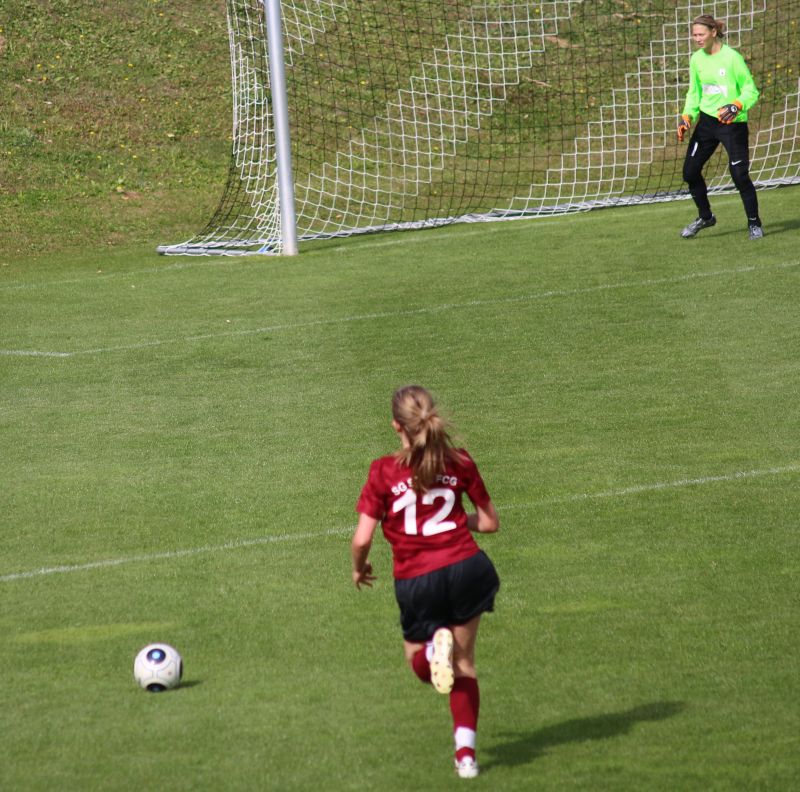 "Die werden in der 2. Halbzeit einbrechen", unkten die ersten Gerolsbacher Zuschauer angesichts fehlender Auswechselspielerinnen und angeschlagener Aktiver. Die Mädchen jedoch gaben diesen Pessimisten ihre ganz eigene Antwort: mit unbändigem Einsatz und immer sicherer in den Kombinationen werdend kamen sie zu mehreren Chancen - unter anderem einem Lattenkracher von Lea Lugscheider in der 55. Minute -, ehe eine Münchener Abwehrspielerin einen der Angriffe nur noch mit Handspiel im Strafraum abwehren konnte. Den fälligen Elfmeter versenkte Johanna Roscher unhaltbar ins Tor der sehr guten Torhüterin Shonaj Fuchs (78.). 3 Minuten zuvor hatte Virginia Ihde den Beleg dafür geliefert, wie wenig die Spielerinnen des FC Stern München mit dieser enormen Gegenwehr gerechnet hatten. Nach einem Tackling ließ sie sich zu einer Tätlichkeit gegen Maria Breitsameter hinreißen und erhielt vollkommen verdient für diese unrühmliche Aktion die rote Karte.