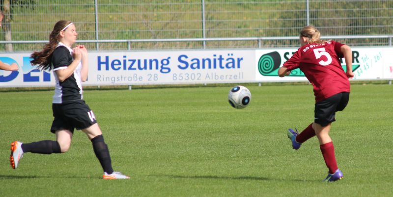 Puh, war das ein Spiel in der Bezirksliga der U17-Mädchen! Selbst als eigentlich unbeteiligter Zuschauer war man nach der Begegnung der Spielgemeinschaft aus Scheyern und Gerolsbach gegen den haushohen Favoriten FC Stern München geschafft. Absolut verdient belohnten sich die Mädchen aus dem Landkreis mit einem 1-1 (0-1) Unentschieden für ihren unbändigen Einsatz über die gesamten 80 Minuten. Dabei mussten sie jedoch - auch wegen äußerer Umstände - bis an ihre Leistungsgrenzen gehen.