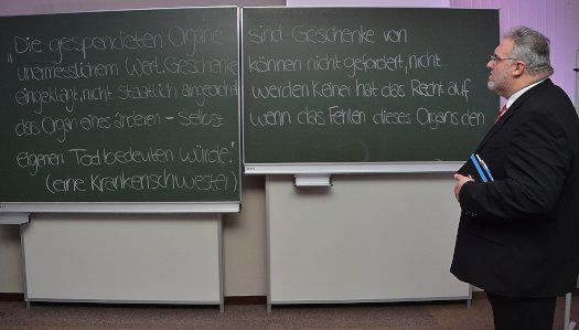 Dezent im Hintergrund gehalten hat sich die fachlich begleitende Lehrerin Heidrun Untch als die jungen Moderatoren Joy Meier und Marco Nobre Dos Reis das Programm vorstellten. In mehrere Informationsblöcke und auf verschiedenen Schulräume aufgeteilt, wurden die medizinischen, ethisch-religiösen und rechtlichen Aspekte beleuchtet. Bewegende Beiträge lieferten zum einen Krankenpfleger Thomas Fischer („Der Körper verisst nichts“), einer der seltenen Dreifach-Organtransplantierten, und Ulrike Katona, die ihrer Tochter eine Niere spendete. Der CSU-Bundestagsabgeordnete und als solcher auch Mitglied im Gesundheitsausschuss stand ebenfalls Rede und Antwort zu Fragen rund um die Organspende.