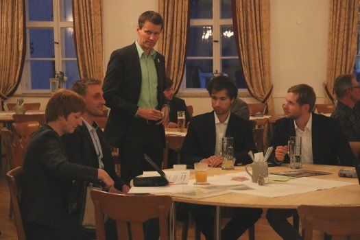 Projektleiter Martin Sailer (stehend) von der B.A.U.M. Gruppe mit seinem Team