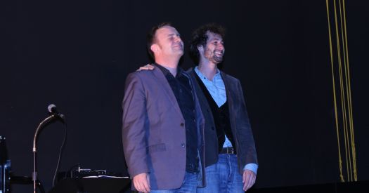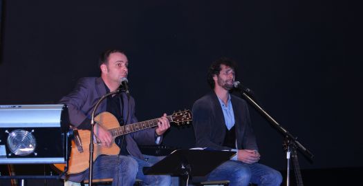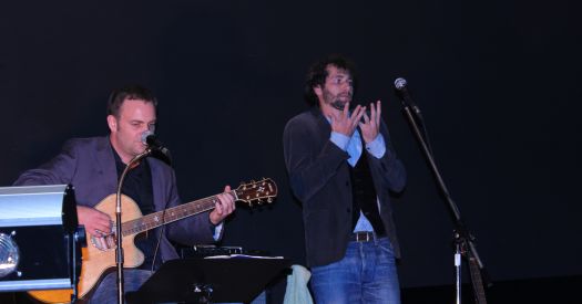 Als musikalischer Begleiter hat sich Stefan Leonhardsberger den Augsburger Profimusiker und Gitarristen Martin Schmid ins Boot geholt. „M.C. Schwabendeifi“, oder das „enfant terrible der Augsburger Musikszene“, wie Leonhardsberger ihn augenzwinkernd während des Konzerts nannte. Dieser ist als Frontmann der „Presley Familiy“ ebenso fest in der Musik verwurzelt. Die beiden ergaben durchweg eine unvergleichliche Mischung, von vorne bis hinten perfekt aufeinander abgestimmt und eingespielt.