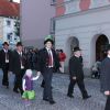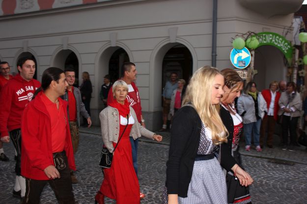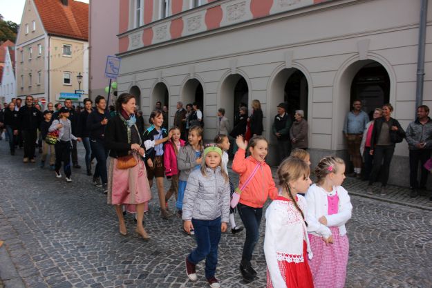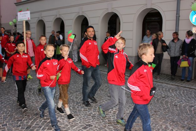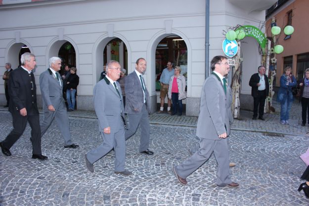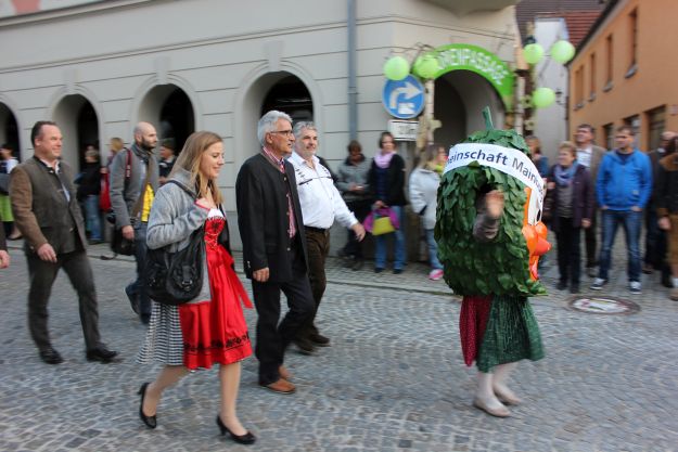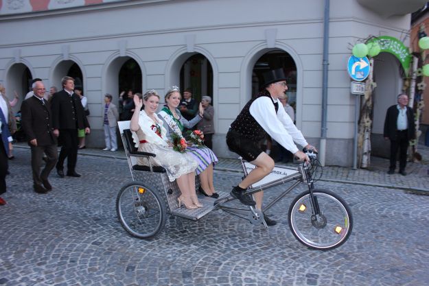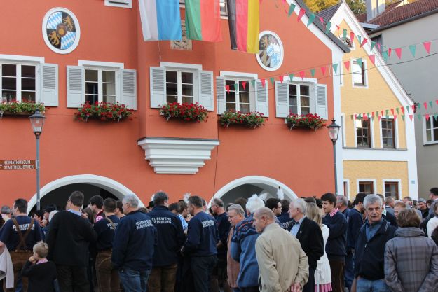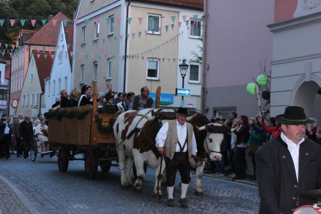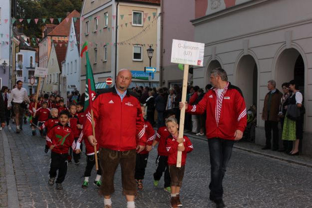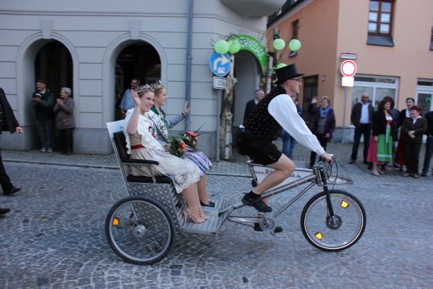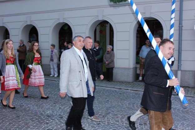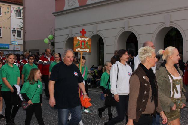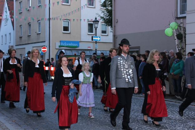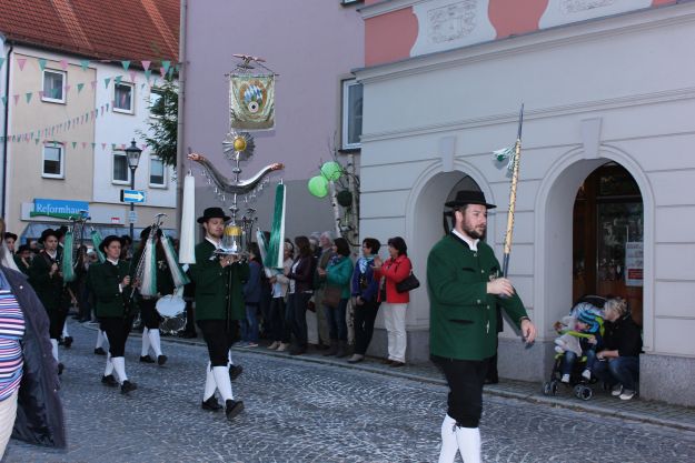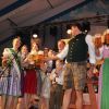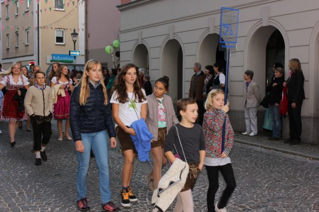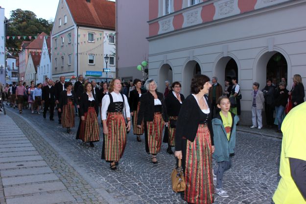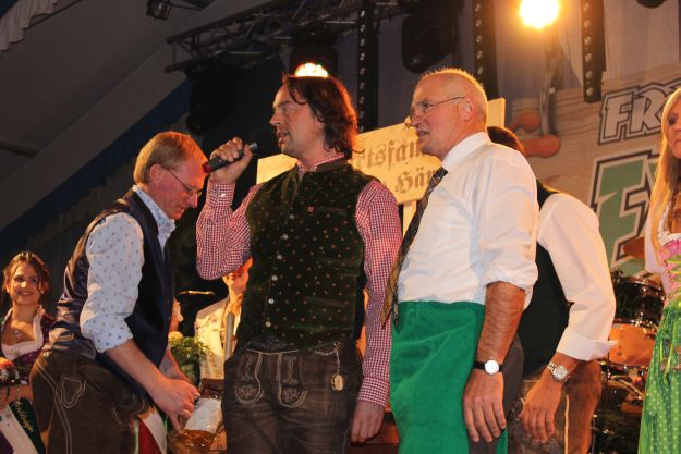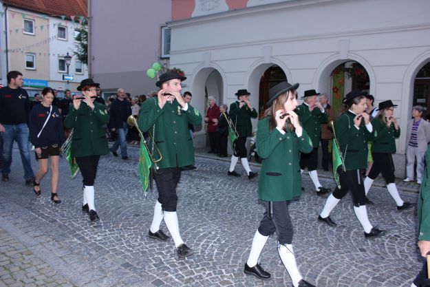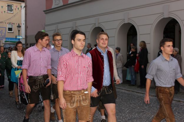 Am Auszug beteiligten sich auch heuer wieder zahlreiche Vereine, wobei die letzten ins Bierzelt kamen, als die ersten ihre Maß schon wieder ausgetrunken hatten - so viele waren es. Zuvor war der Aufmarsch zum Standkonzert vor dem Rathaus mit der Jugend-und Stadtkappelle Mainburg, der Marktkappelle Au und dem Spielmannszug Högertshausen. Danach schlängelte sich der Zug bestehend aus Ehrengästen, Brauereivertretern und Festwirten in Richtung Schöllwiese. Nach dem Bieranstich startete die Zeltparty mit dem „Froschhaxn Express“.