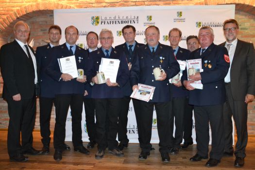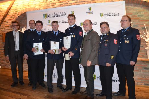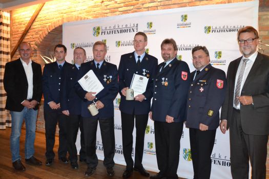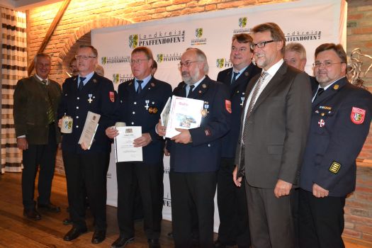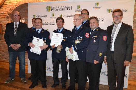 Zu einer Ehrung von Feuerwehrleuten, die seit 25 und 40 Jahren aktiv Dienst geleistet haben, lud der Landkreis die zu Ehrenden, ihre Kommandanten und Bürgermeister der südlichen Landkreisgemeinden nach Siebenecken ins Hotel Straßhof. Bei der Begrüßung durch Landrat Martin Wolf und beim Grußwort von Pfaffenhofens Bürgermeister Thomas Herker dankten beide den Feuerwehrleuten für ihren persönlichen Einsatz.