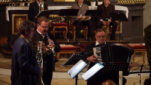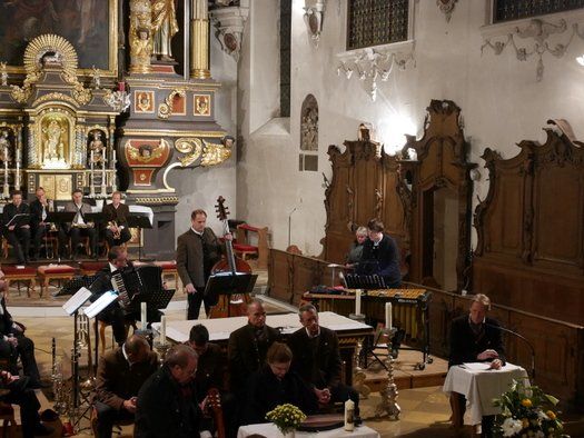 Stadtpfarrer Peter Wagner begrüßte die Gäste in seiner vollbesetzten Stadtpfarrkirche mit einführenden Worten. Sein Dank richtete sich auch an die Sponsoren, wie die Sparkasse Pfaffenhofen und die Stadt Pfaffenhofen, die durch ihr Engagement, solch eine kostenlose Veranstaltung erst möglich machen. Max Penger, unermüdlicher Organisator und Erfinder der MEMO Reihe, spielte diesmal höchstpersönlich, als Teil des grandiosen Peter Wittrich Xtett´s, mit. Weitere Lokalmatadoren Michael Leopold (Vibraphon), Peter Wittrich (Akkordeon), Reinhard Greiner, (Trompete) im Zusammenspiel mit Kontrabassist Thomas Laar aus Rosenheim und Posaunist Erwin Gregg aus München.