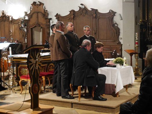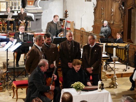 Weitere Teilnehmer waren, der Haushamer Bergwachtg´sang mit ihren einfühlsamen Jodlern und das Grassauer Blechbläserquartett mit einer Alphorneinlage. "Papstpilot" Martin Ott hat zwischen den Stücken Texte zum Themenkreis Erntedank - Kirchweih – Allerheiligen vorgelesen. Die ungewöhnliche Rolle der Maria, vor allem im bayerischen Katholizismus, ist ihm dabei, anscheinend sehr aufgefallen.