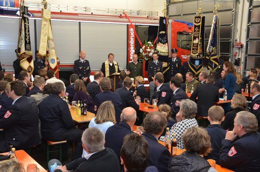 Die Segnung des Fahrzeuges übernahm nach einem kurzen Gottesdienst Langenbrucks Ortspfarrer Michael Schwertfirm im Feuerwehrgerätehaus.