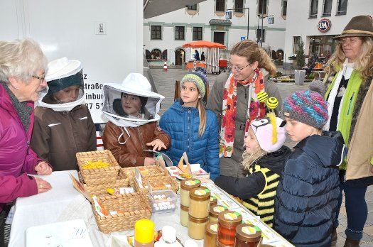 Besuch des Bienenfreunde-Nachwuchses am Marktstand von Rosa Kaindl.