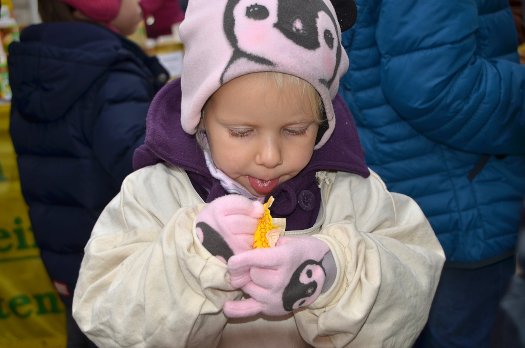 Kinder aus den Kindergärten St. Johannes und Burzlbaam haben gekonnt einen musikalischen Bienen-Schwänzeltanz gezeigt und mit ihm die Kommunikation dieser beeindruckenden Insektenart imitiert. Dazu gab es lustige Bienenlieder, die die Aufmerksamkeit der Passanten erregten.