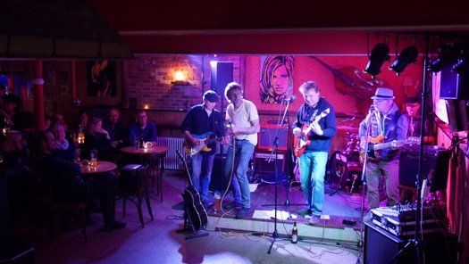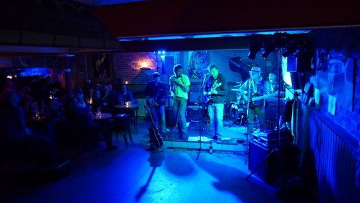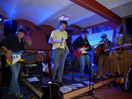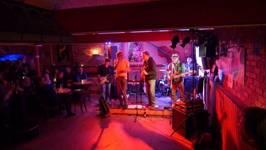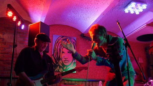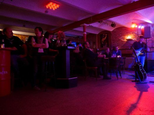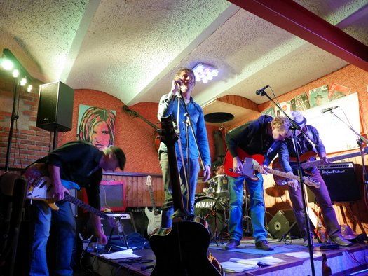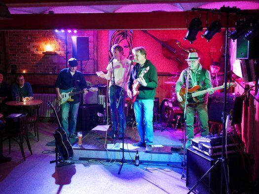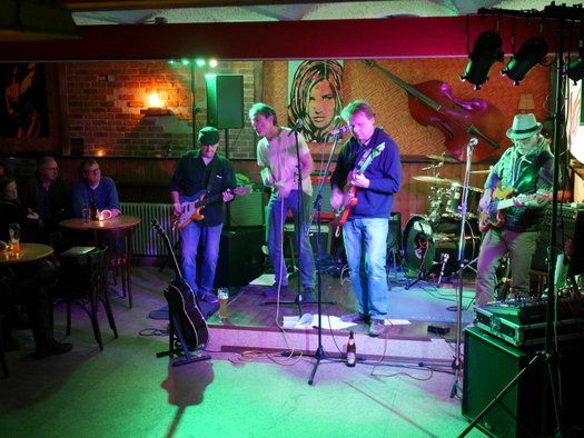 Wenn man von draußen in das Gemäuer hineinhört, hat man erst mal den Eindruck, dass da eine alte Westernhagenplatte läuft, oder irgendetwas anderes in der Art der 80ziger Jahre. Vom Publikum her passt ja der Jahrgang, aber wo sonst eher englischsprachige Cover gespielt und getanzt werden, hört der geneigte Besucher, deutsch.
