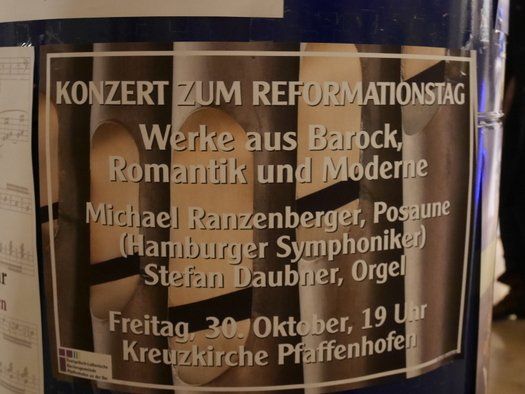 Am Vorabend des Reformationsfestes gab der Posaunist Michael Ranzenberger, zusammen mit dem Organisten der Evangelisch Lutherischen Kirchengemeinde Pfaffenhofen, Dr. Stefan Daubner, ein gut besuchtes Konzert in der Pfaffenhofener Christuskirche.