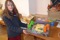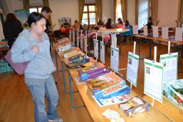Unter dem Motto „Augen auf beim Spielekauf“ hatte der Kreisjugendring empfehlenswerte Brettspiele zum Testen und Spielen bereitgestellt. Wie Reiner Siegmund vom Kreisjugendring erklärte, hatten alle Kräfte des Kreisjugendringes die Spiele getestet und die Kurzbeschreibungen erarbeitet. Zusammen mit Christian Kestel betreute er am Sonntag den Spieletag. Wie am Tag zuvor saßen Jugendliche oder Kinder mit ihren Eltern an den Tischen und spielten. Und immer wieder gingen Kinder an die Tische, auf denen die Spiele aufgebaut waren, lasen die Kurzbeschreibung und schnappten sich ein Spiel, um auch dieses zu testen. Man merkte, dass es ihnen Spaß machte und vor allem waren es alles Spiele, die von den Verlagen neu herausgebracht worden sind. Bei Fragen konnte man sich an die beiden Vertreter des Kreisjungendrings wenden. Der Sonntagvormittag war wegen des sehr tollen Wetters etwas ruhiger, doch gegen Nachmittag, nachdem sich die Sonne verabschiedet hatte, strömten wieder mehr Besucher in den Saal des Rentamts.