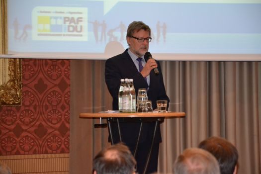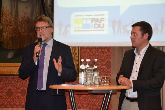 Bürgermeister Thomas Herker (SPD) gab ehrlich zu, dass ihn die Fernsehbilder anfangs nicht so sehr berührt hätten, als über Flüchtlinge auf den griechischen oder italienischen Inseln berichtet wurde, doch die Dynamit der Entwicklung habe ihm schließlich doch Angst gemacht, denn nach den neuen Planungen kämen täglich als Flüchtlinge zwei neue Pfaffenhofener hinzu. Rückschauend müsse man feststellen, dass das Thema Flüchtlinge nicht professionell angepackt wurde, da es auch keinen Master-Plan hierfür gegeben habe. Landrat Martin Wolf (CSU) konnte ihn da nur unterstützen und es zeige die besondere Situation, wenn Landrat und Bürgermeister zusammen auf einer Bühne stehen würden. Eigentlich sei die Veranstaltung schon deutlich früher geplant gewesen, nicht erst jetzt in der deutlich zugespitzten Situation. Dem Landratsamt gehen inzwischen die Unterbringungsmöglichkeiten aus, die Flüchtlingsströme kämen viel zu schnell und er muss von Monat zu Monat schauen, wie das Problem gelöst werden kann. Er befürchtet, dass sonst die Gesellschaft zerbrechen könne.