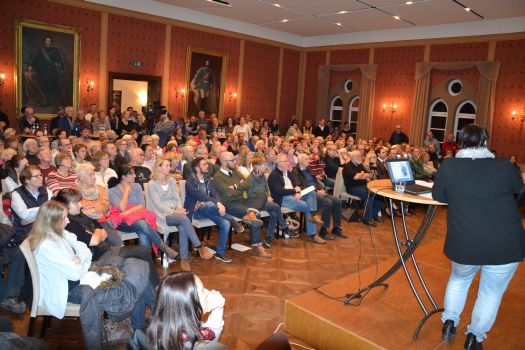 Über dreihundert Bürgerinnen und Bürger strömten in den Rathaussaal zum Informationsabend über Flüchtlinge und Asyl, es waren so viele, dass die aufgestellten Stühle einfach nicht ausreichten und Bürgermeister, Stadtjurist und Stadträte mit anpackten, um zusätzliche Stühle in den Saal zu schleppen. Aber trotzdem reichte die Kapazität nicht aus, so dass die Saaltüren offen blieben für die Menschen im Vorflur.