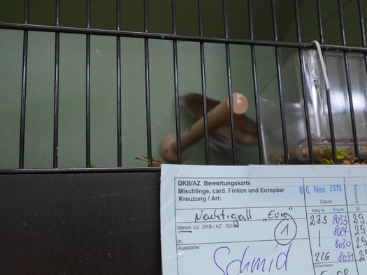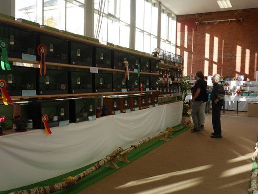 Ein vielfältiges Gezwitscher empfängt den Besucher schon beim Eingang. Unzählige Käfige und Volieren, beherbergen gefiederte Freunde aus aller Welt. Vom einfachen Kanarienvogel, über Nachtigall, Dompfaff, Sittich, oder ganze Zeisigfamilien, ist die große, kleine Welt der Zuchtvögel zu bestaunen. Große Preisrosetten in verschieden Farben, zeugen an den Käfigen von der Arbeit der Preisrichter. Die Details, warum jetzt ein Vogel einen Preis bekommt und der ebenso schöne Nachbar daneben nicht, werden sich dem Laien nicht erschließen.
