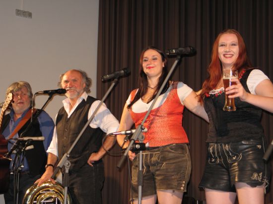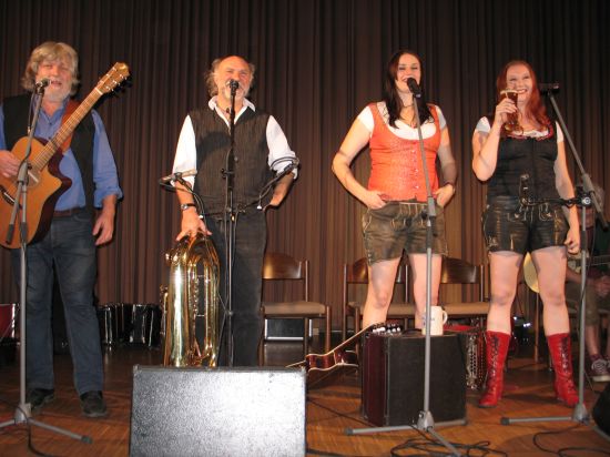 Otto Göttler, Sepp Raith, d'Rait-Schwestern und da Blaimer servierten "Unverschämte Wirtshausmusik" vom Feinsten in der ausverkauften Mainburger Stadthalle. Frech, g'schert und lustig ging es zu, als die beiden Urgesteine der baierischen Kleinkunstbühnen Otto Göttler vom Baierisch Diatonischen Jodel-Wahnsinn, der Liedermacher Sepp Raith und seine sauberen Rodinger Namensvetterinnen, die Raith-Schwestern samt angeheirateten Blaimer die Bühne stürmten und unverschämte baierische Wirtshauslieder, selbsterfundene Couplets und G'stanzl zum Besten gaben. Dabei fanden sie sogar Zeit und Muße, unseren rasenden Reporter von der Bühne aus mit ins Programm mit einzubeziehen und ihn dabei gehörig aufs Korn zu nehmen.