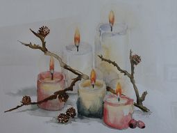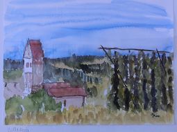 In einem Raum wurden Werke des Aquarellmalkurses von Lia Köhnlein ausgestellt, z.T. wirklich schöne Gemälde der Kursteilnehmer, die schon seit Jahren diese Workshops der Künstlerin besuchen. Auch aus dem Kurs "Kunst für Kinder" waren einige Werke zu besichtigen.